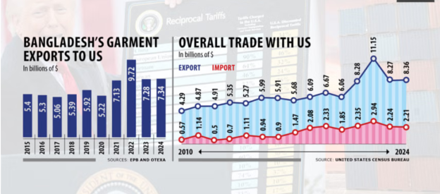 • Impact on the Ready-Made Garment (RMG) Sector: The ready-made garments sector is the backbone of Bangladesh’s economy, and the U.S. is one of its largest export markets. The negotiated tariff rate is expected to help the sector retain its competitiveness and potentially increase its market share. This is especially true for core products like formal shirts, polo shirts, trousers, and sweaters, which make up a significant portion of Bangladesh’s apparel exports to the U.S.