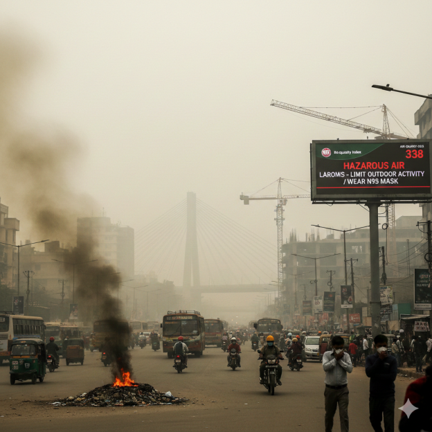 Dhaka is currently facing a severe air pollution crisis, frequently ranking as the most polluted city in the world. As of late February 2026, the city has seen Air Quality Index (AQI) scores exceeding 330, classifying the air as “hazardous.” This spike is largely due to the dry winter season, which traps pollutants like fine particulate matter PM_2.5 near the ground. The primary contributors include unregulated brick kilns, massive construction projects, ageing vehicle fleets, and the open burning of municipal waste.