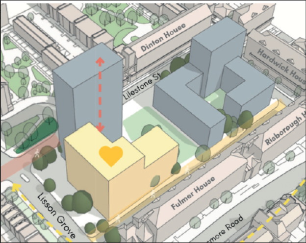 The Masterplan presents Lilestone Street dedicated primarily to the Health & Wellbeing Hub, with a homes target of 50 for the site.  In the Cabinet Member report of 9/4/25 which signs off what is termed the ‘Lisson Grove Programme by local councillor Matt Noble as Cabinet Member for Regeneration ( no longer in post).  It mentions a target of “between 250-300 new homes across Orchardson Street and Lilestone Street”.